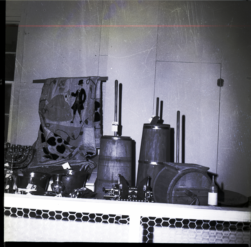 - Some old butter churns, pots, dishes, candelabra, and embroidered blanket are on display at the Twin Falls County Fair.
