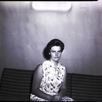 - Mrs. Robert Van Wormer, president of the Twin Falls Epsilon Sigma Alpha Alpha Beta Chapter, sits on a couch. She is wearing a floral print sleeveless dress.